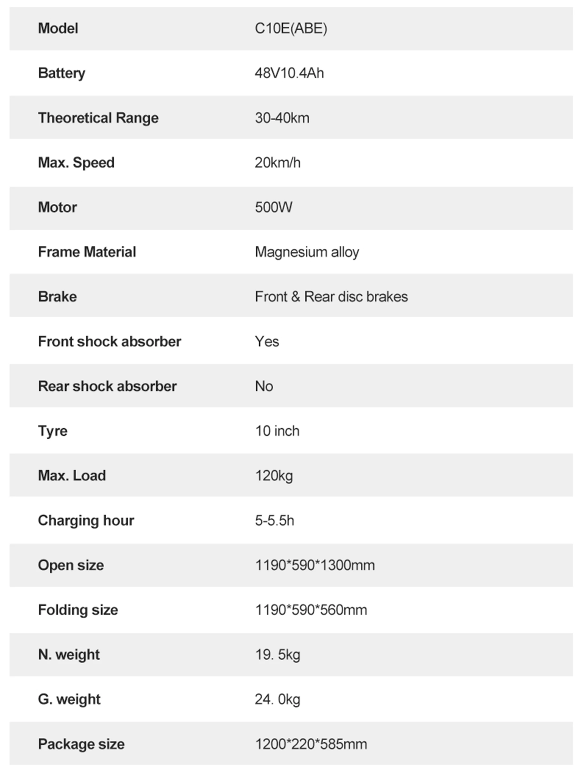 Battery: 48V 10.4Ah