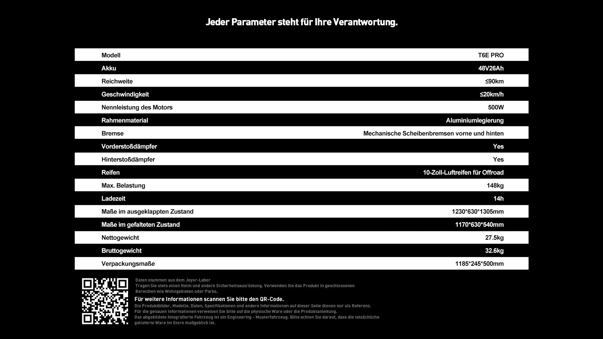 500W Motor | 48V 26AH Battery | 20km/h Speed | 75-100km Range | German ABE Certified